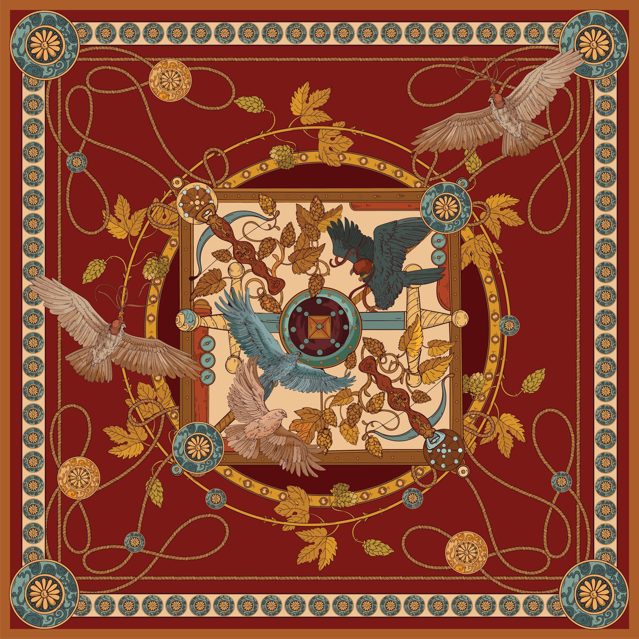 Legendary images of Slavic history inspired us to create a new collection reflecting the glorious past of our ancestors. This artistic perspective on culture, traditions, and military prowess finds expression in the stunning "Hunting with Falcon" scarves.