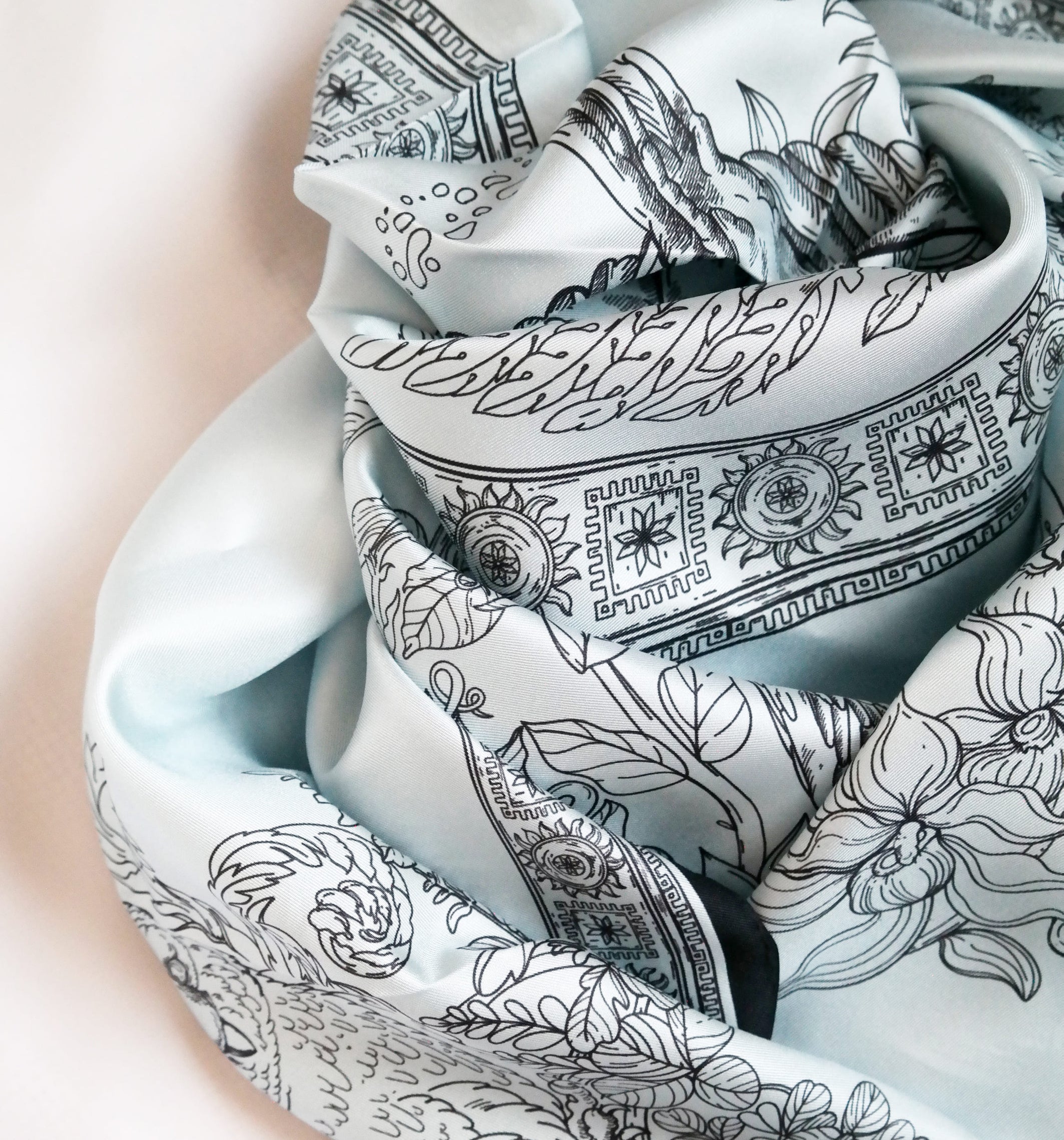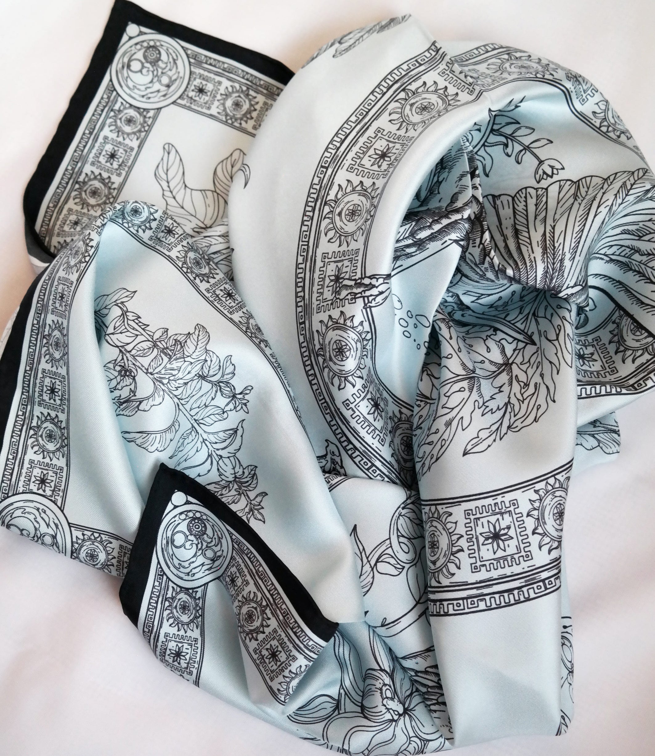 Apaszki wykonane są z twilu, 100% jedwab, z ręcznie wykończonymi brzegami.