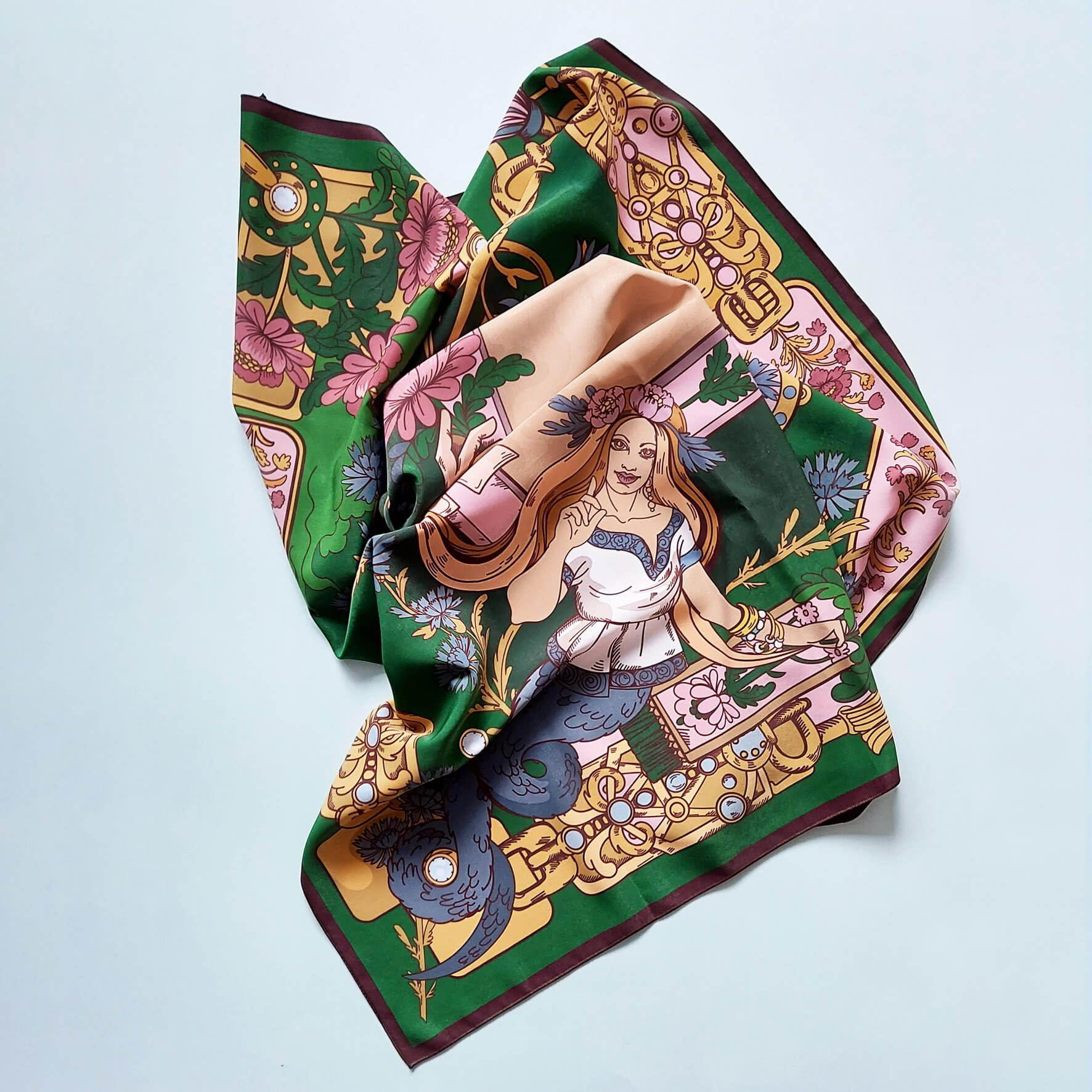 Apaszka "Użałka" to połączenie białoruskiej mitologii i rzemiosła ludowego. Legenda o córce Króla Wężów splata się z wzorami pasów słuckich w czterech wariantach kolorystycznych.