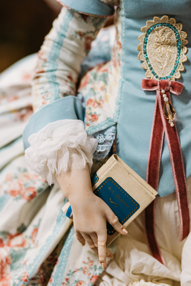 Świat lalek poprzez języki miłości własnej, ucieleśniony w niepowtarzalnych jedwabnych wstążkach we wspólnej współpracy z Iriną Sazanowicz. Twill z wizerunkiem kwiatu migdałów jest o języku miłości czułości dla siebie.